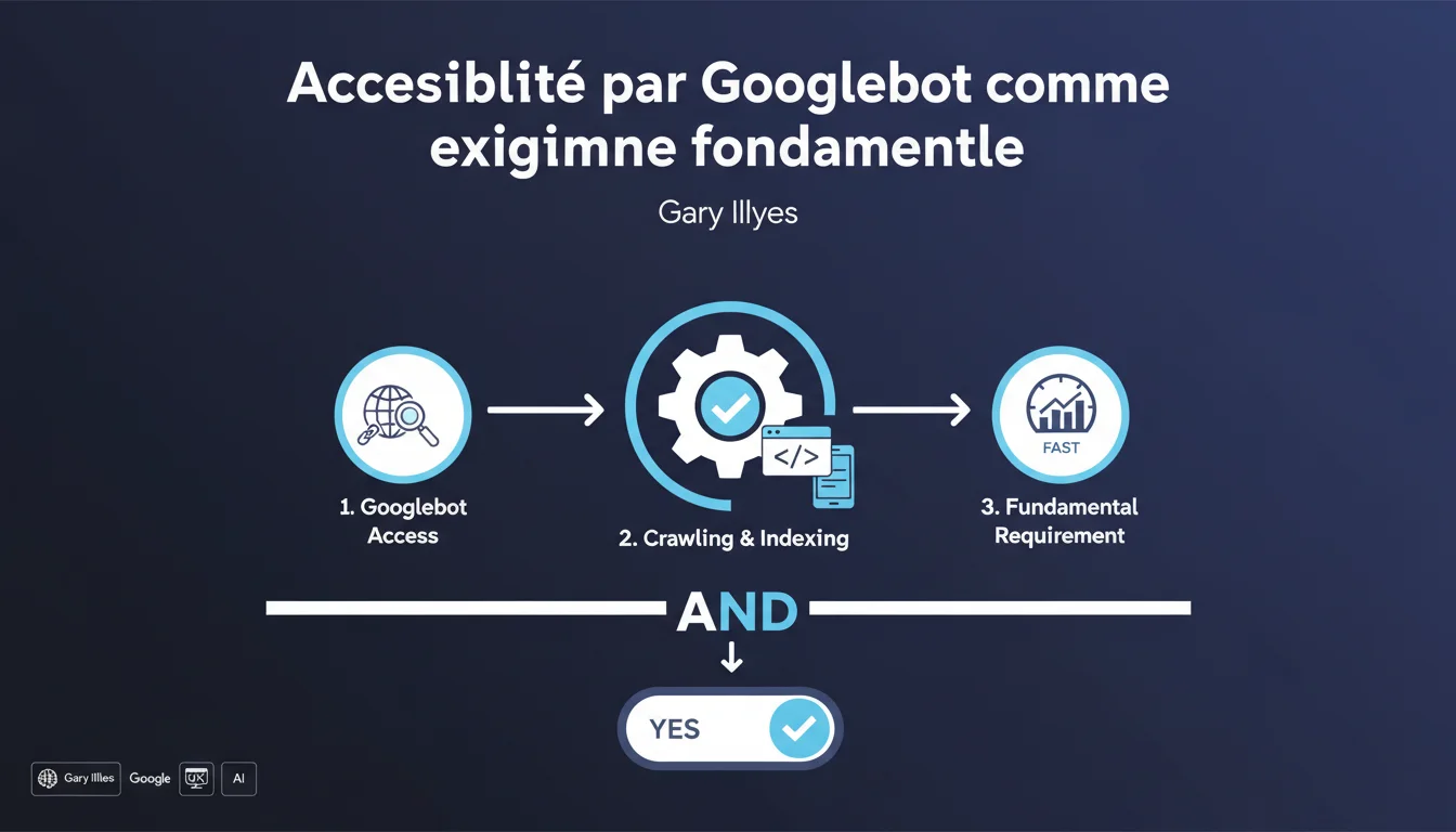 Gary Illyes précise que l'accessibilité par Googlebot n'est pas une règle qu'on peut « violer » — c'est une condition technique binaire : soit Google accède aux pages, soit il ne le peut pas. Cette exigence fait partie des trois prérequis absolus pour l'indexation, au même titre que l'absence de noindex et la qualité minimale du contenu.