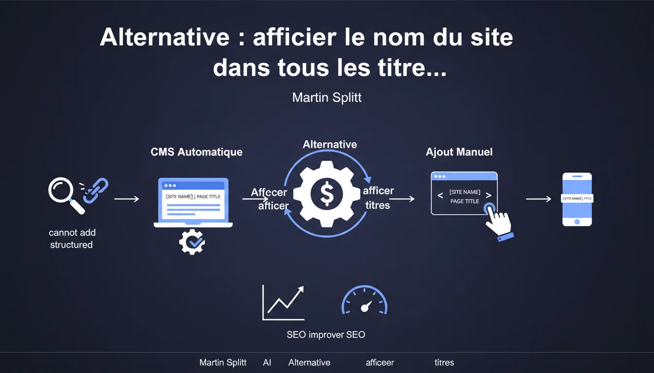 Soyons honnêtes : l'ajout manuel du nom du site dans chaque title n'est pas la solution optimale. C'est un palliatif pour ceux qui ne maîtrisent pas les données structurées. Si vous pouvez implémenter le balisage WebSite, faites-le — c'est plus propre et plus souple.