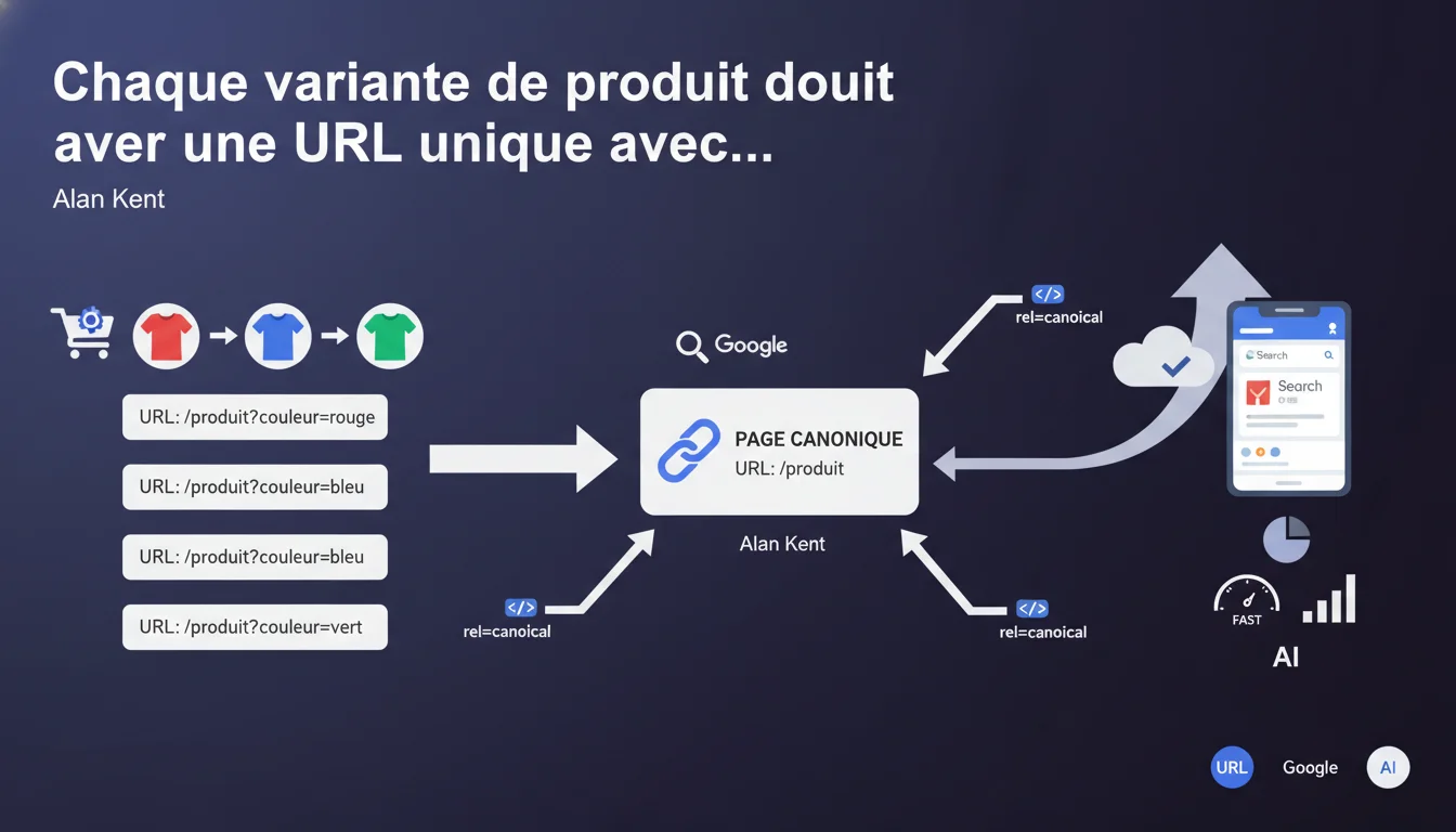 - Cette structure aide Google à comprendre les relations entre variantes sans dupliquer les signaux SEO