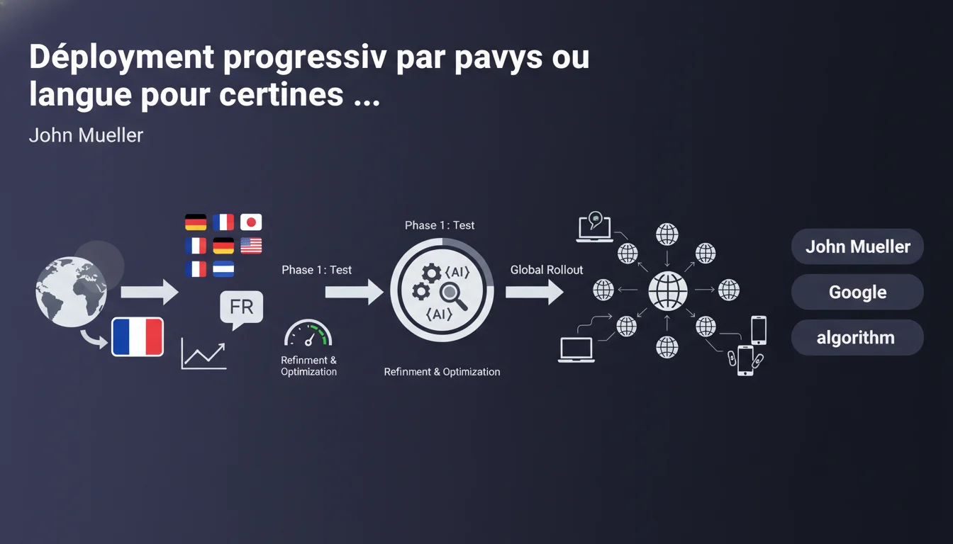 Mueller parle de "certaines" mises à jour, pas toutes. Les Core Updates majeures semblent déployées de façon plus synchronisée mondialement, même si l'impact varie selon les niches et langues.