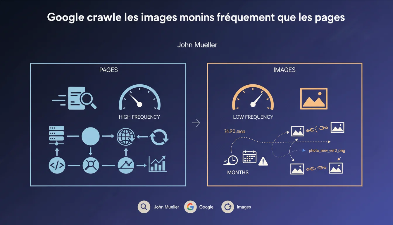 John Mueller confirme que les images sont crawlées nettement moins souvent que les pages HTML. La logique de Google est simple : une image change rarement après sa publication initiale, contrairement au contenu textuel qui évolue régulièrement.