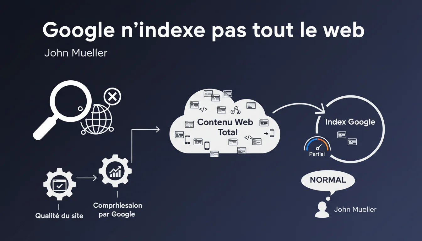 Google n'indexe pas toutes les pages d'un site web, et c'est normal. La quantité de contenu indexé dépend directement de la perception globale de qualité que Google a de votre domaine. Concrètement : si Google juge votre site médiocre, même des pages correctes peuvent rester hors index.