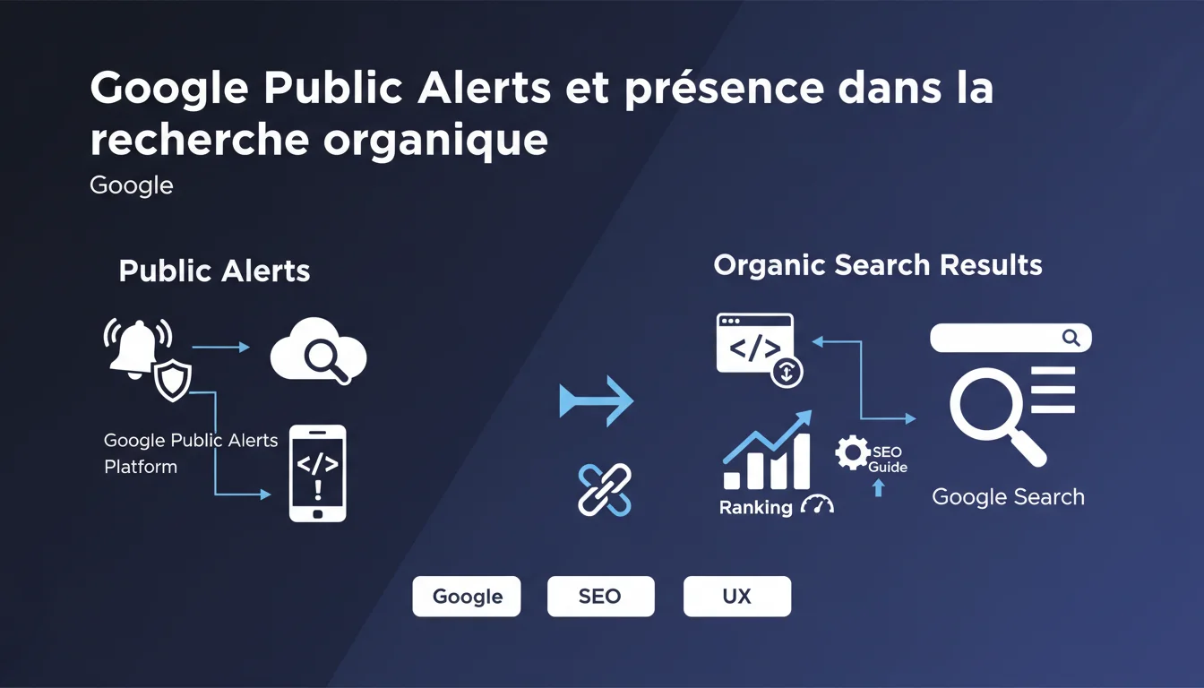Google Public Alerts est une fonctionnalité qui affiche des alertes d'urgence géolocalisées directement dans les résultats de recherche — catastrophes naturelles, alertes météo critiques, incidents de sécurité publique. Ces alertes remontent de sources officielles (gouvernements, agences météo, services d'urgence).