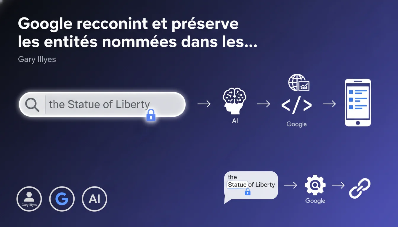 Google reconnaît les entités nommées dans les requêtes et préserve intentionnellement les mots vides qui en font partie intégrante. Pour 'the Statue of Liberty', le mot 'of' n'est pas supprimé car il appartient à l'entité elle-même. Cette approche affecte directement le matching des requêtes et la pertinence des résultats.