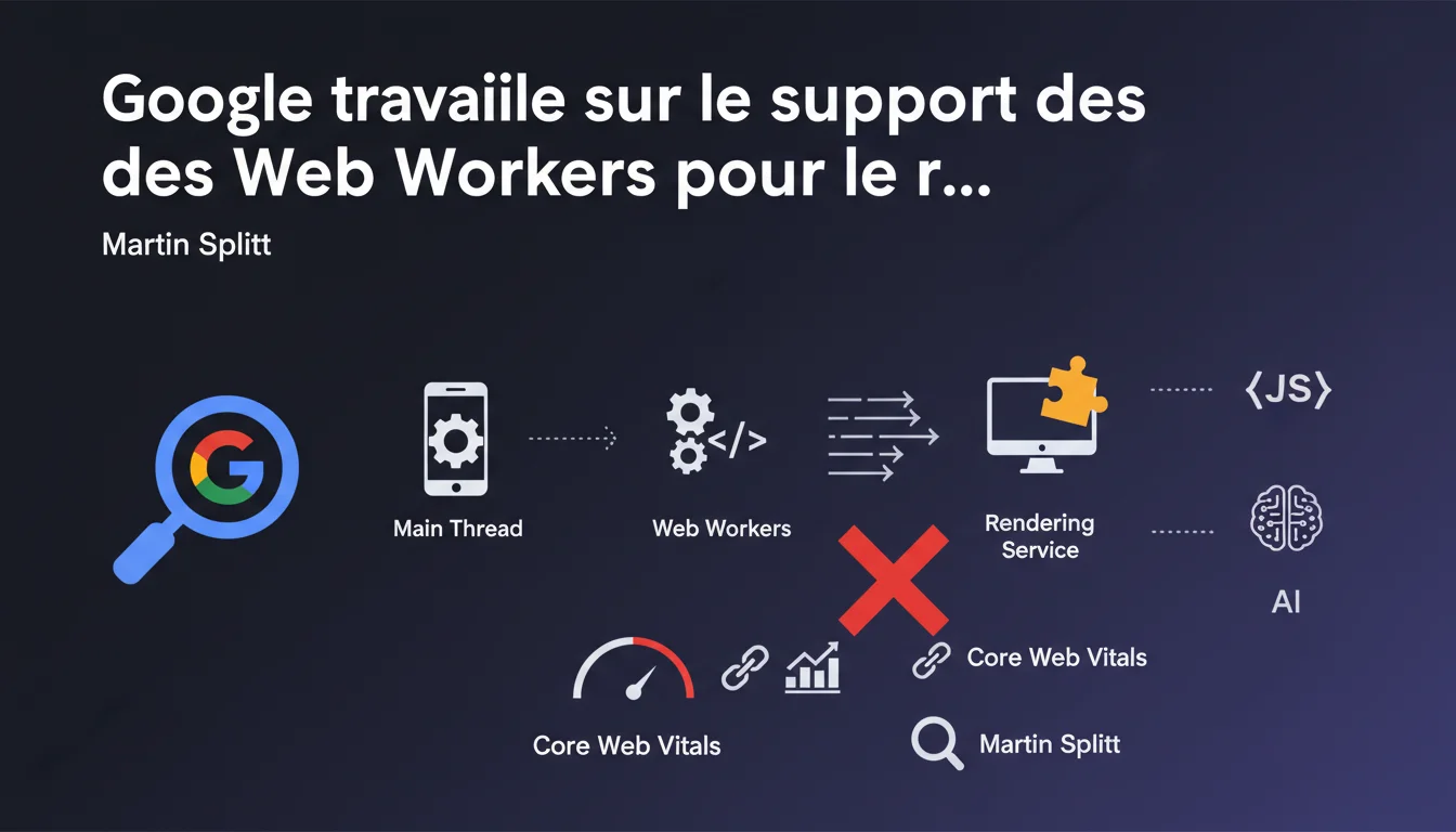 Le service de rendu de Google ne gère pas encore correctement les Web Workers, cette technique JavaScript qui déplace le travail hors du thread principal. Alors que de plus en plus de sites adoptent cette approche pour améliorer leurs Core Web Vitals, Googlebot risque de mal interpréter ou de ne pas voir certains contenus. Un décalage technique qui peut impacter l'indexation.