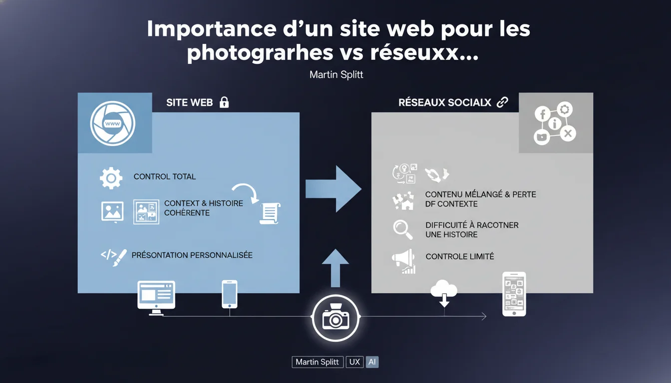 Non. Splitt utilise l'exemple de la photographie parce que c'est visuel et parlant, mais le principe s'applique à tous les créateurs de contenu. Rédacteurs, designers, consultants, artisans : dès que votre activité dépend de la qualité et du contexte de présentation, un site propre reste indispensable.