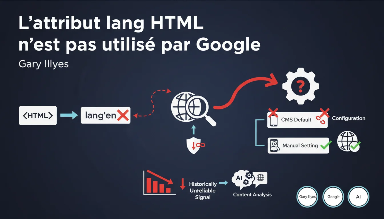 La déclaration de Gary Illyes est sans ambiguïté : l'attribut lang des balises HTML ne sert à rien pour le référencement. Google l'a historiquement écarté parce que ce signal s'est révélé trop bruité.
