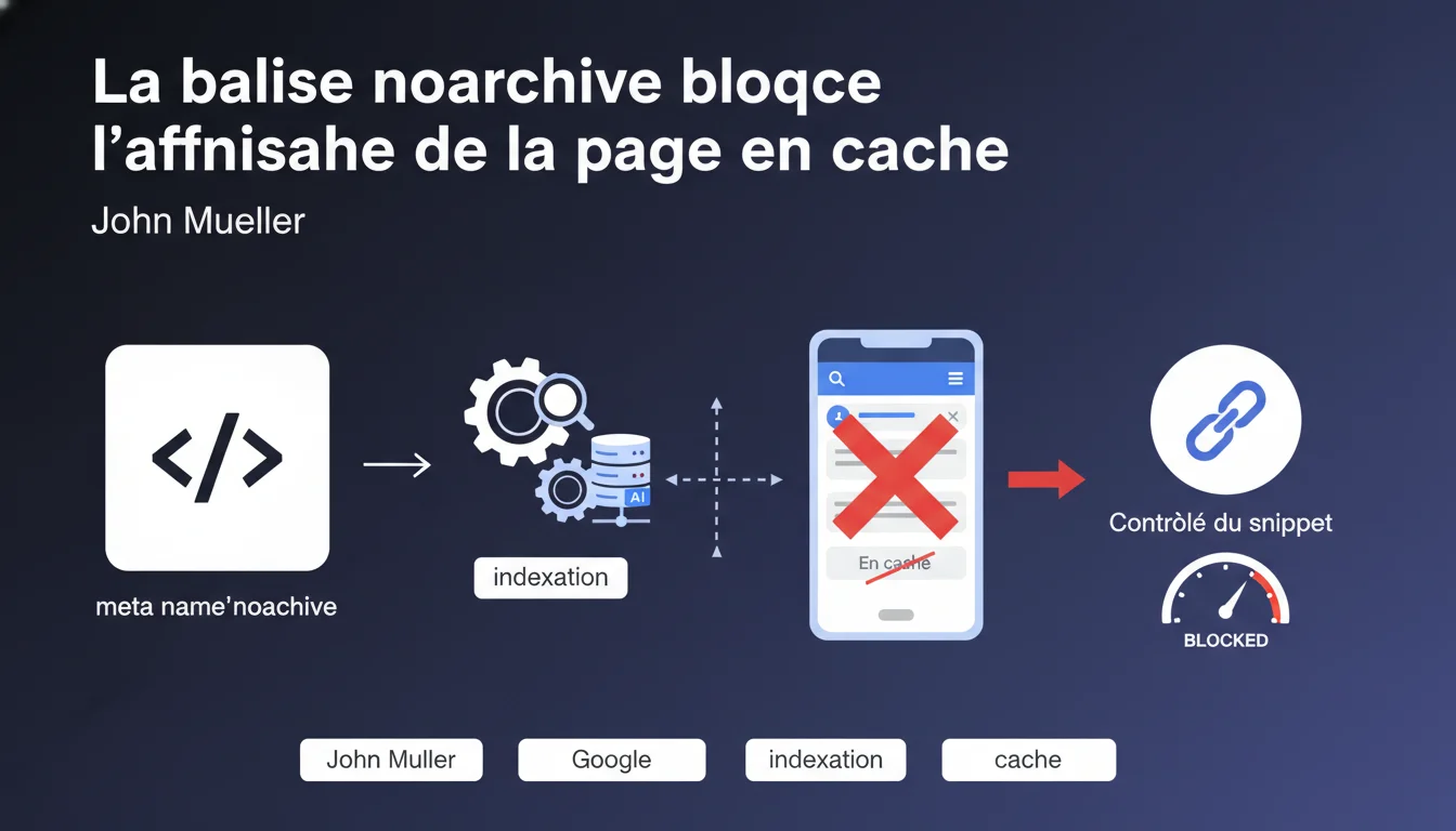 Mueller classe explicitement noarchive parmi les contrôles de snippet. Au même titre que nosnippet ou max-snippet, elle modifie ce que Google affiche dans les SERP sans toucher à l'indexation elle-même.