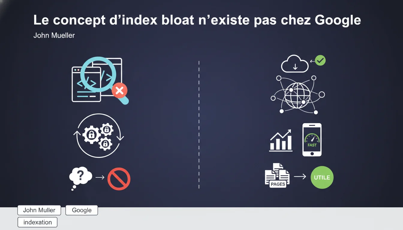 Mueller dit que Google n'a pas de mécanisme d'index bloat — soit. Mais il ne dit pas qu'avoir des milliers de pages inutiles est sans conséquence. Distinction cruciale.