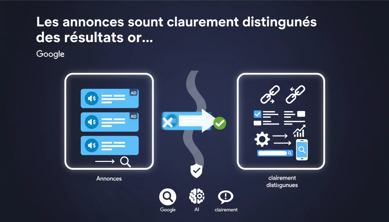 Google affirme que ses publicités sont clairement identifiées et faciles à distinguer des résultats organiques. Pour les SEO, cela pose la question de la visibilité réelle des résultats naturels face à l'emprise croissante des espaces publicitaires dans les SERP. L'enjeu : comprendre comment cette « clarté » impacte concrètement le trafic organique.