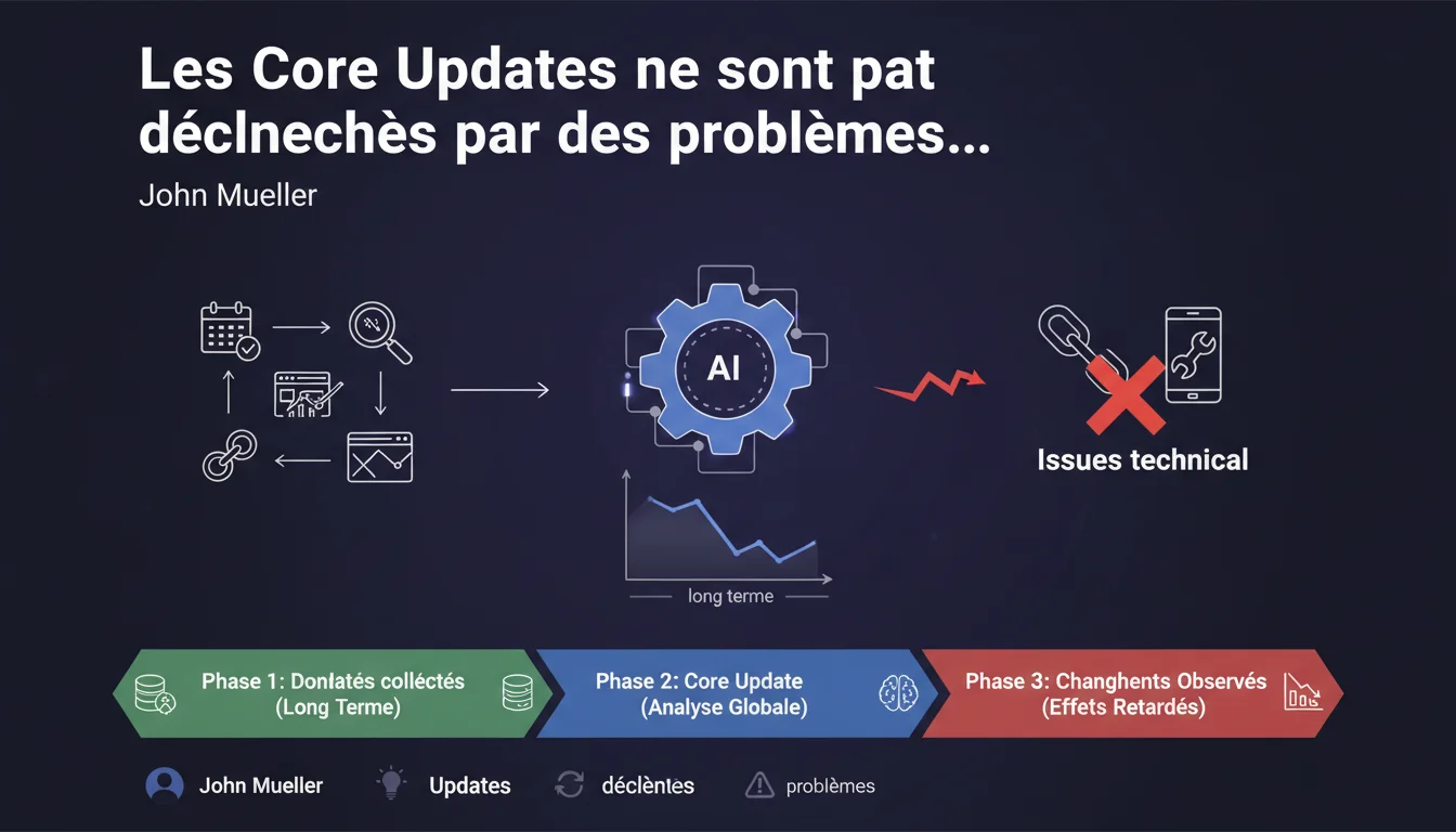 Mueller répond ici à une croyance persistante dans la communauté SEO : l'idée qu'un bug technique survenant au mauvais moment — pendant le déploiement d'une Core Update — pourrait déclencher une catastrophe en visibilité.