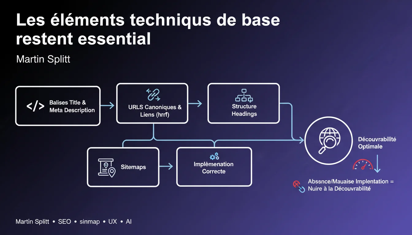 On pourrait croire qu'avec l'IA générative et les algorithmes de plus en plus sophistiqués, Google n'aurait plus besoin de ces marqueurs structurels basiques. Pourtant, Splitt le dit clairement : ces éléments techniques restent le socle sur lequel repose la découvrabilité d'un site.