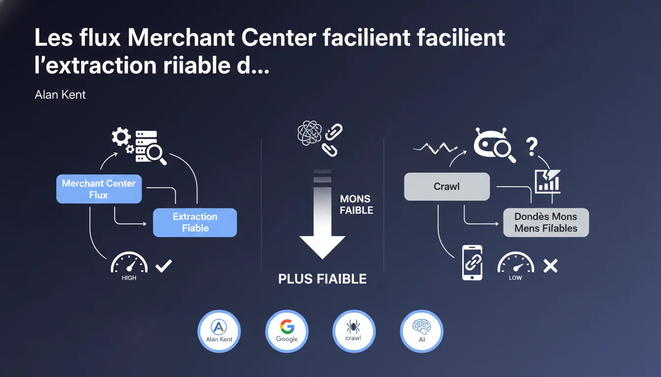 Google affirme que les données extraites des flux Merchant Center sont plus fiables que celles crawlées sur vos pages produits. Les flux structurés, conçus pour être lus par des machines, évitent les ambiguïtés d'interprétation du contenu HTML. Pour les e-commerces, cela signifie qu'un flux bien configuré peut compenser des pages mal optimisées — mais pas les remplacer totalement.