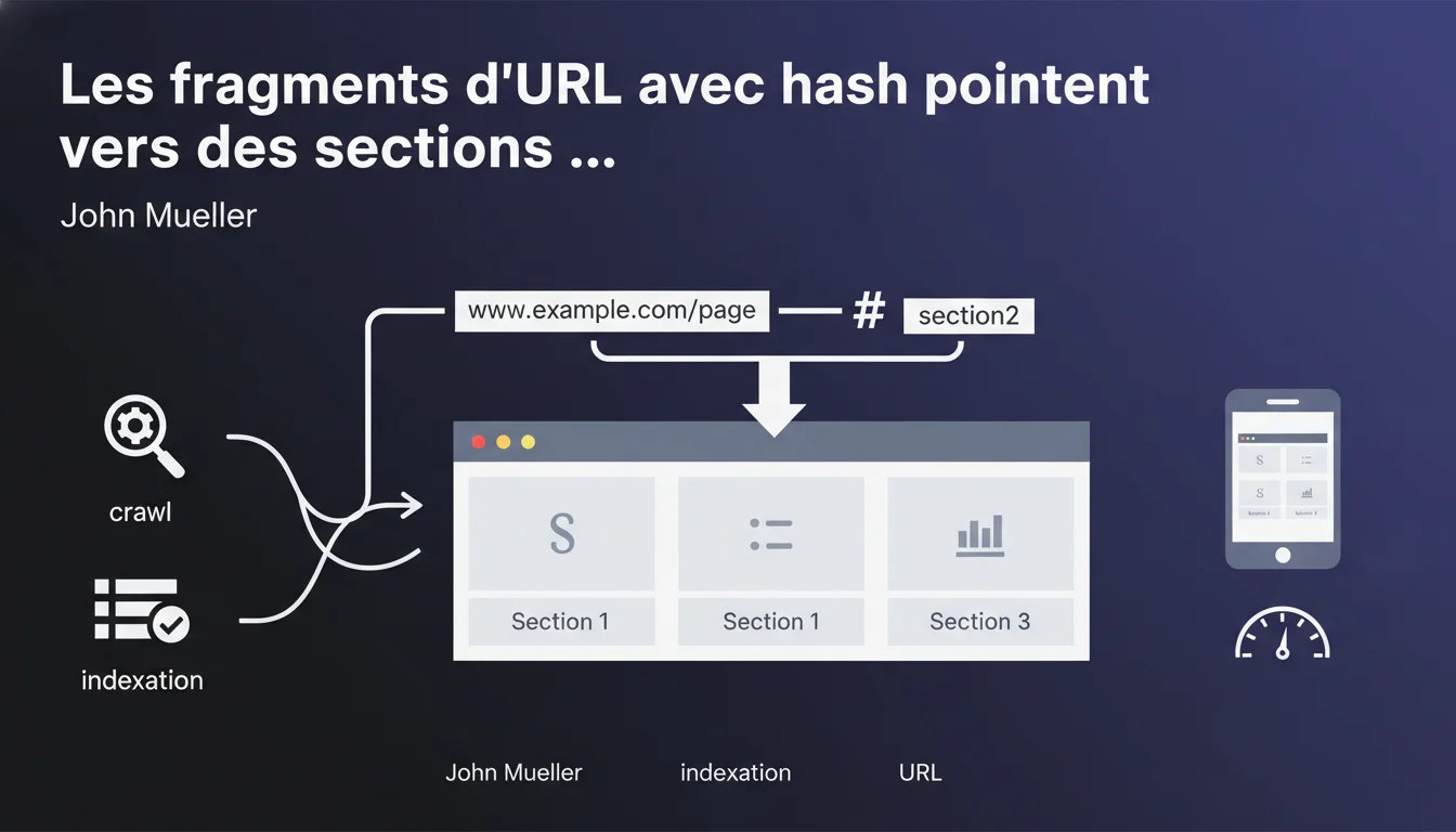 Google considère les URLs avec fragments hash (#) comme une seule et même page, quelle que soit la partie après le #. Le hash sert uniquement à pointer vers une section spécifique côté navigateur, mais n'a aucun impact sur le crawl ou l'indexation. Pour Google, example.com/page et example.com/page#section1 sont strictement identiques.