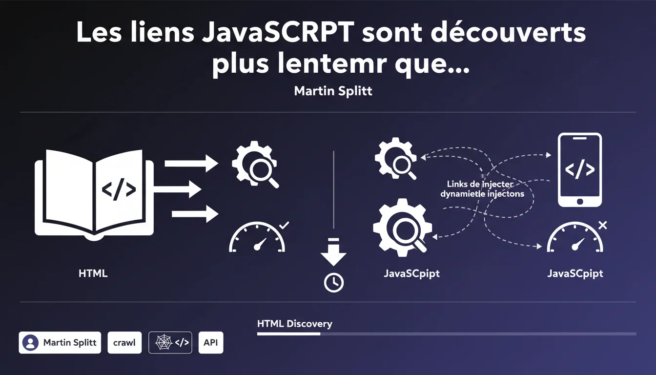 Google confirme que les liens générés dynamiquement en JavaScript sont découverts et crawlés beaucoup plus lentement que les liens HTML natifs. Ce délai peut impacter directement l'indexation de vos pages internes et compromettre leur visibilité dans les résultats de recherche, surtout sur les sites à fort volume de pages.