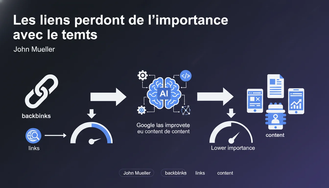 John Mueller affirme que l'algorithme de Google évolue vers une dépendance moindre aux backlinks comme signal de classement. L'objectif : s'appuyer davantage sur la compréhension sémantique et contextuelle du contenu.