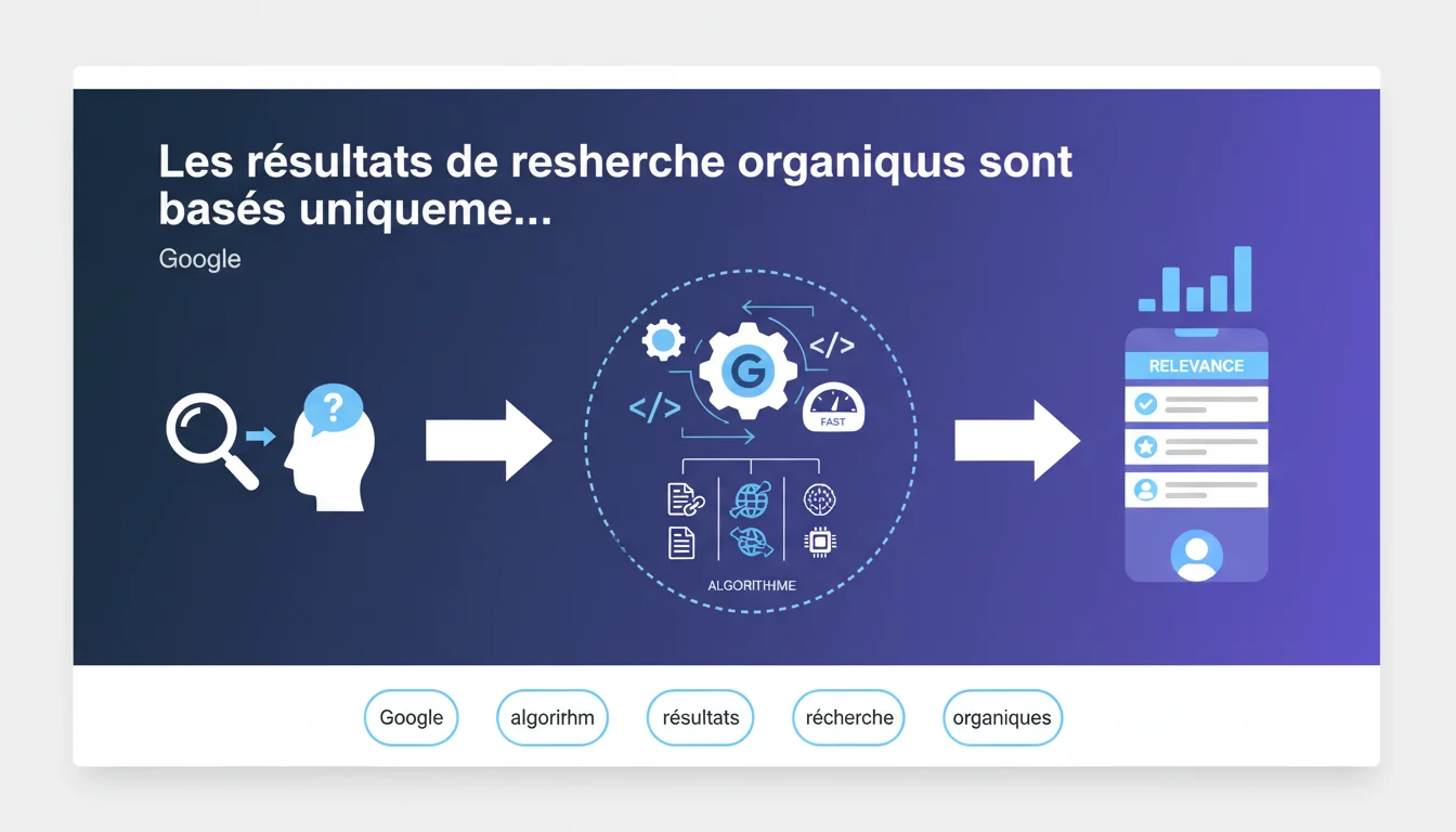Google affirme que ses résultats organiques sont uniquement basés sur la pertinence du contenu par rapport à la requête, sans influence commerciale. Cette déclaration pose un principe fondamental : les algorithmes calculent instantanément des scores de pertinence sans intervention manuelle. En pratique, la définition de « pertinence » reste floue et englobe des centaines de signaux.