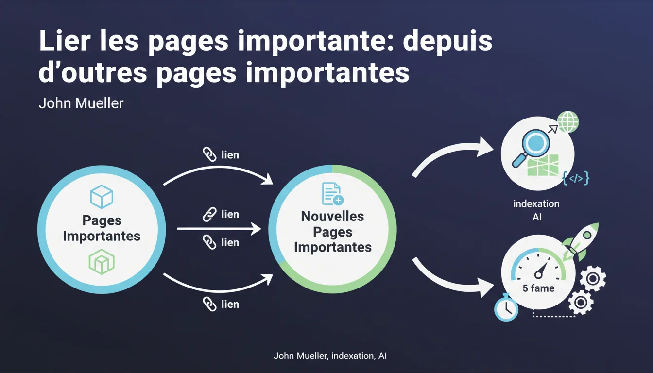 Google confirme qu'un maillage interne intelligent accélère la découverte et l'indexation des nouvelles pages. Concrètement : si une page est stratégique, créez des liens depuis vos pages les plus fortes plutôt que de la laisser orpheline. C'est une question de transfert de crawl budget et de signal de priorité.