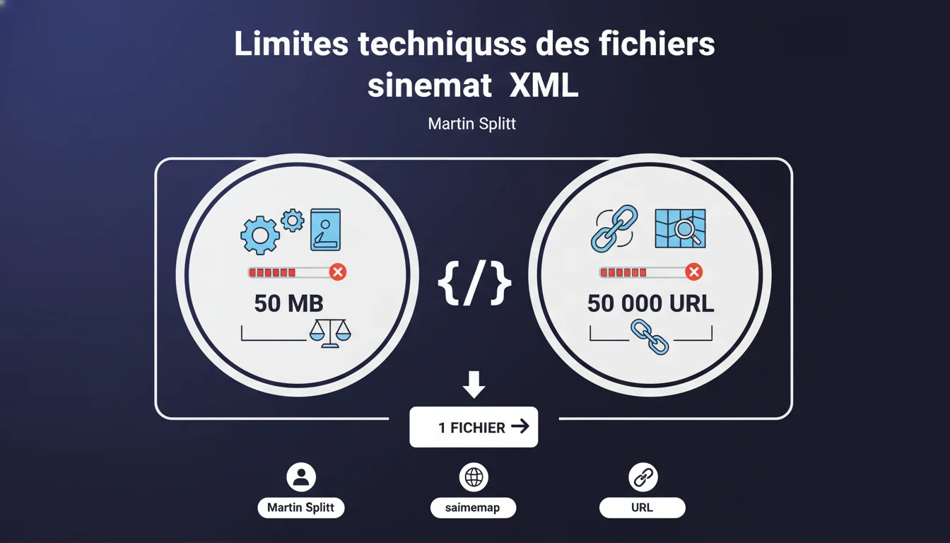 Google impose deux limites strictes pour les fichiers sitemap XML : 50 Mo maximum OU 50 000 URL maximum par fichier. Dépasser l'une de ces limites empêche le traitement complet du sitemap. Pour les sites volumineux, la solution passe par l'utilisation de fichiers sitemap multiples ou d'un index sitemap.