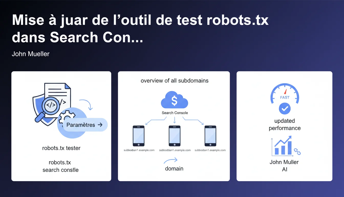 Google a relocalisé l'outil de test robots.txt dans l'onglet Paramètres de Search Console et y a ajouté une vue consolidée des sous-domaines. Ce changement vise à centraliser les outils de configuration technique, mais pose question sur l'utilité réelle de cette vue multi-sous-domaines pour la majorité des sites.