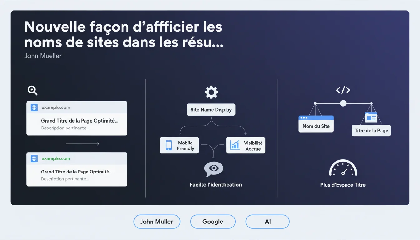 Google modifie l'affichage des noms de sites dans les SERP en les rendant plus visibles, tout en libérant de l'espace pour les titres de pages. Cette évolution vise à améliorer l'identification des sites par les utilisateurs. Les SEO doivent vérifier que leurs noms de sites s'affichent correctement.