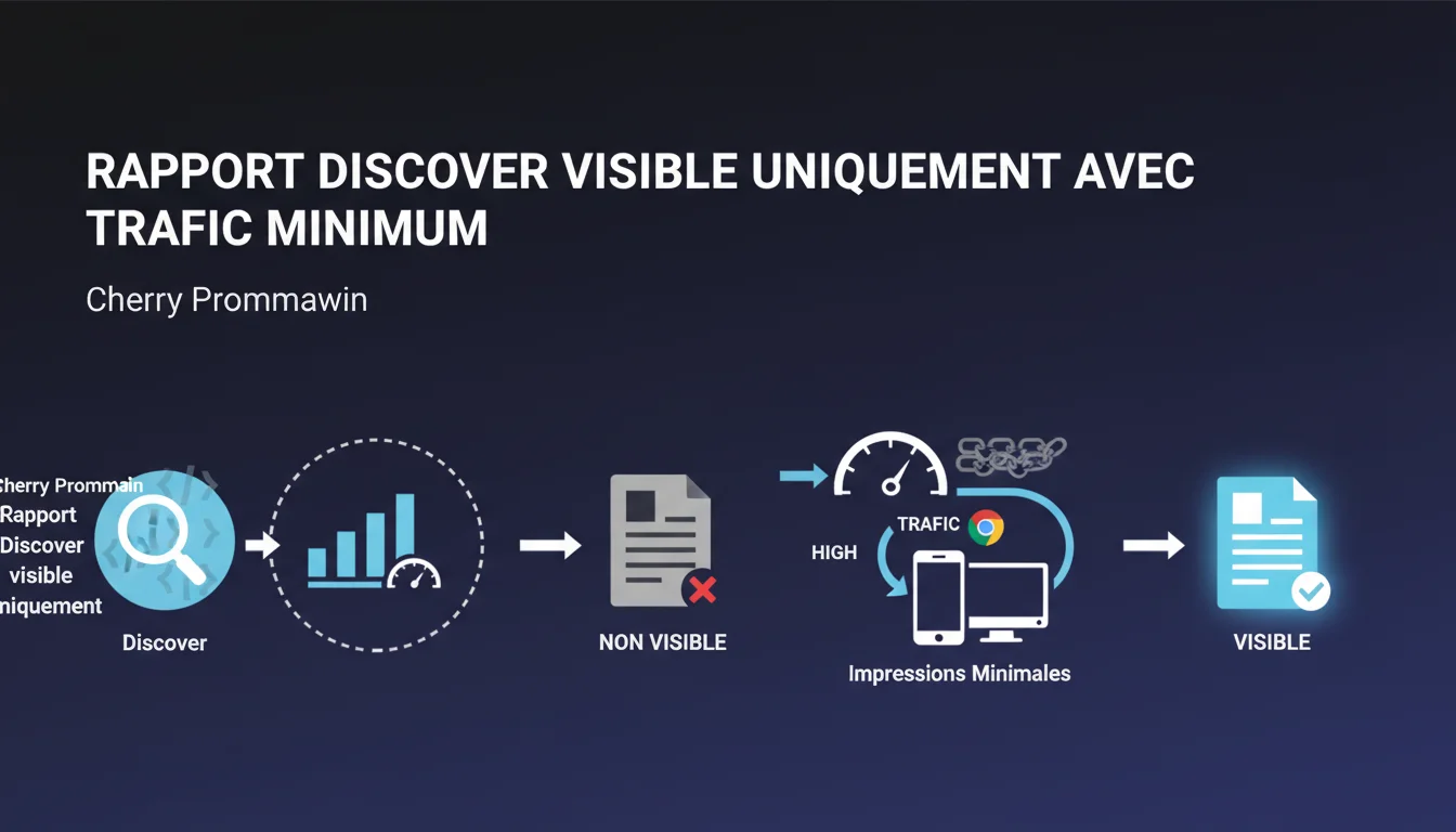 Google impose un nombre minimum d'impressions pour que le rapport Discover Performance s'affiche dans Search Console. Concrètement, si votre site ne génère pas assez de trafic depuis Discover, vous n'aurez simplement pas accès au rapport — même si vous recevez quelques impressions sporadiques.