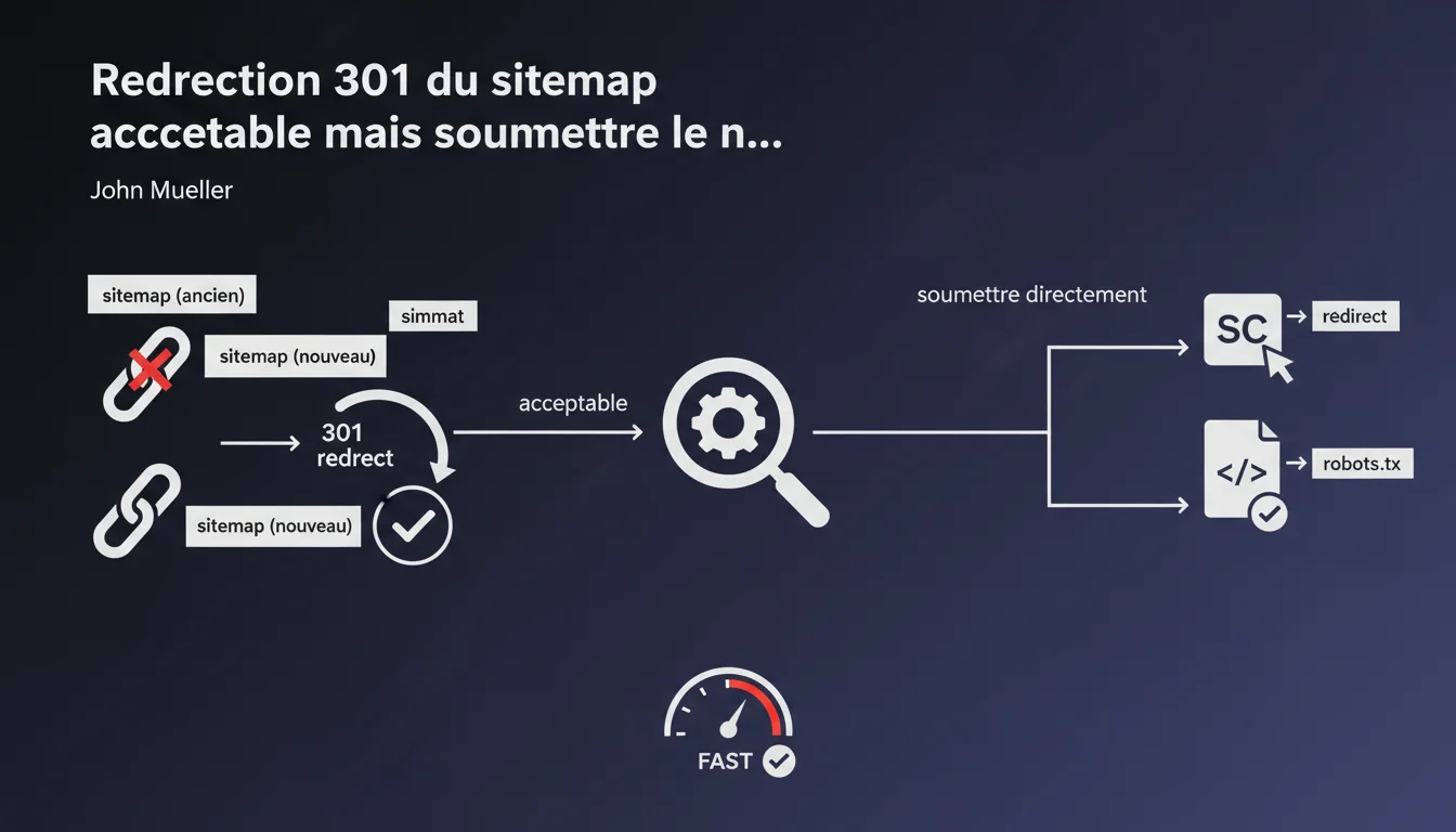 Google accepte les redirections 301 des anciens sitemaps vers les nouveaux sans broncher. Mais Mueller recommande quand même de soumettre directement la nouvelle URL dans Search Console ou robots.txt pour éviter tout malentendu avec les robots. Bref : la redirection marche, mais mieux vaut déclarer explicitement le nouveau sitemap.