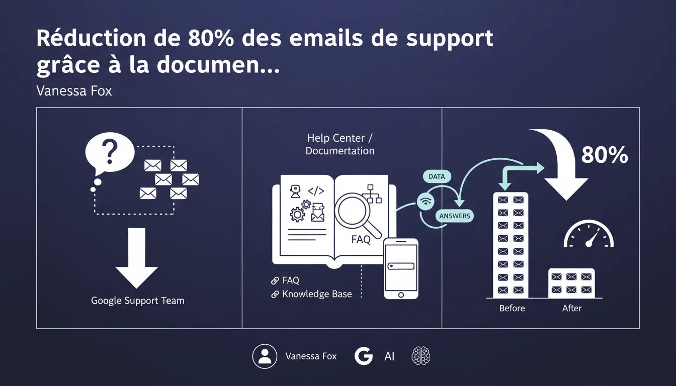 Google a réduit de 80% le volume d'emails reçus par son équipe support en créant un centre d'aide complet basé sur les questions les plus fréquentes. Cette déclaration de Vanessa Fox illustre l'impact d'une documentation bien structurée sur la charge support — et accessoirement sur la visibilité SEO via les featured snippets et les recherches informationnelles.