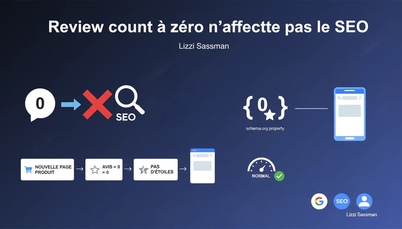 Lizzi Sassman met les choses au clair — et c'est cohérent avec la logique même des données structurées. Le balisage sert à informer Google de ce qui existe sur la page, pas à inventer du contenu. Un aggregateRating avec reviewCount à zéro dit simplement la vérité : aucun avis n'a encore été posté.