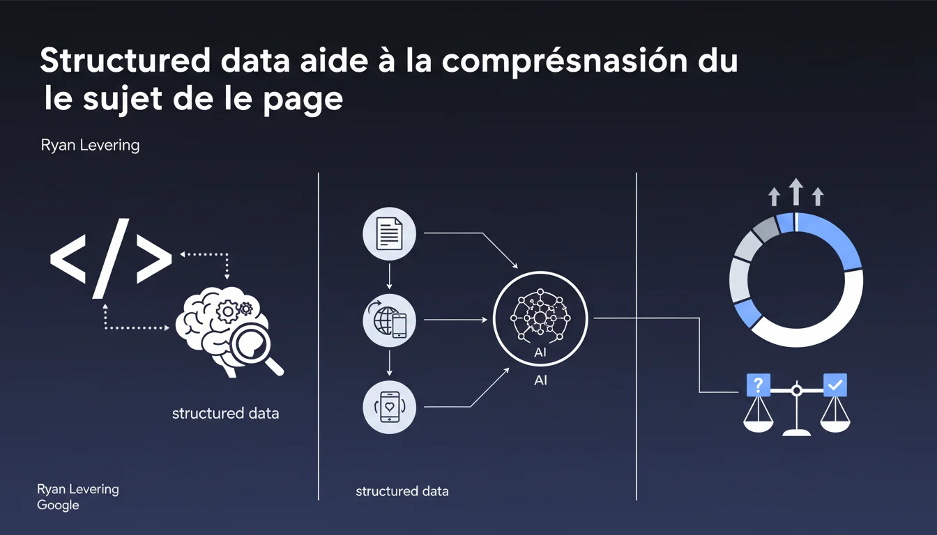 - Les données structurées alimentent le modèle de compréhension, pas seulement l'affichage des résultats enrichis.