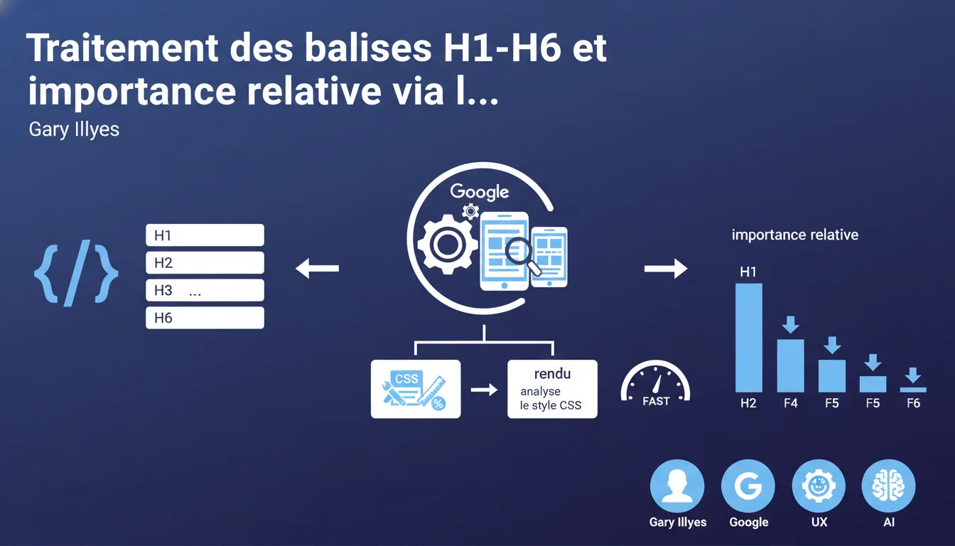 Google normalise toutes les balises d'en-tête et utilise le rendu CSS pour déterminer leur importance relative. Concrètement : la hiérarchie visuelle (tailles, poids, espacements définis en CSS) influence désormais la manière dont Google interprète la structure sémantique de votre page. Exit le dogme du H1 unique tout-puissant.