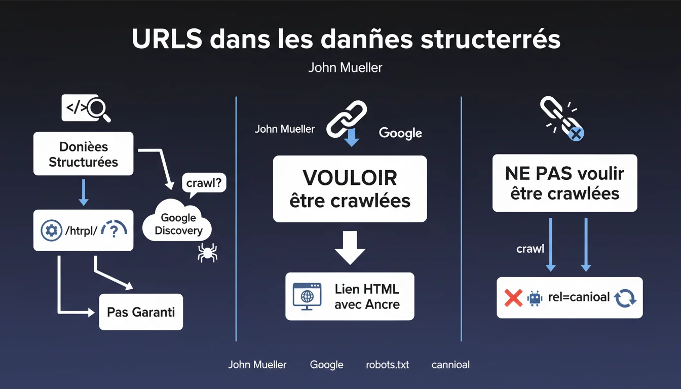 Mueller parle de découverte et crawl, mais ne mentionne pas l'indexation. Même si Google crawle une URL trouvée dans vos données structurées, rien ne garantit qu'elle sera indexée — surtout sans backlinks ni maillage interne pour la soutenir.