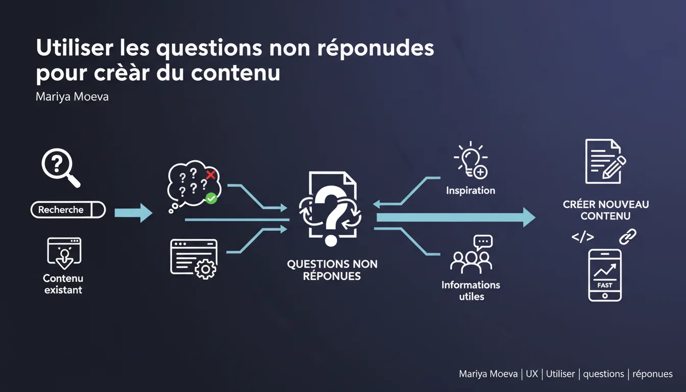 Google suggère d'identifier les questions que les utilisateurs posent sans obtenir de réponse directe, puis de créer du contenu pour y répondre. L'idée : cibler des intentions de recherche sous-servies pour attirer de nouveaux visiteurs. Une approche qui semble évidente, mais dont l'efficacité dépend entièrement de votre capacité à détecter ces opportunités réelles.