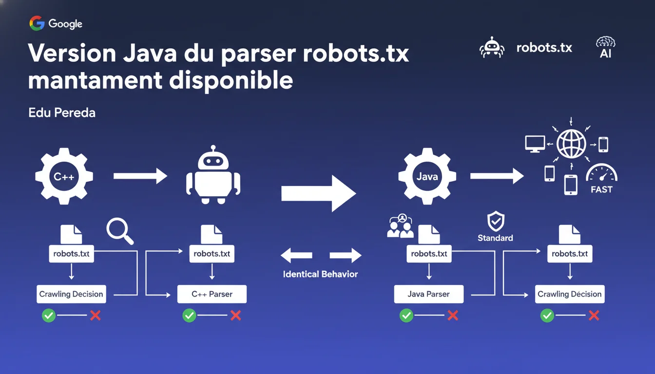 Google publie une version Java de son parser robots.txt officiel qui réplique exactement le comportement de la version C++ existante. Cette implémentation suit le même standard RFC 9309 et garantit une cohérence totale d'interprétation entre les deux langages. Pour les SEO : un outil de plus pour tester et valider les fichiers robots.txt sans risque de divergence d'interprétation.