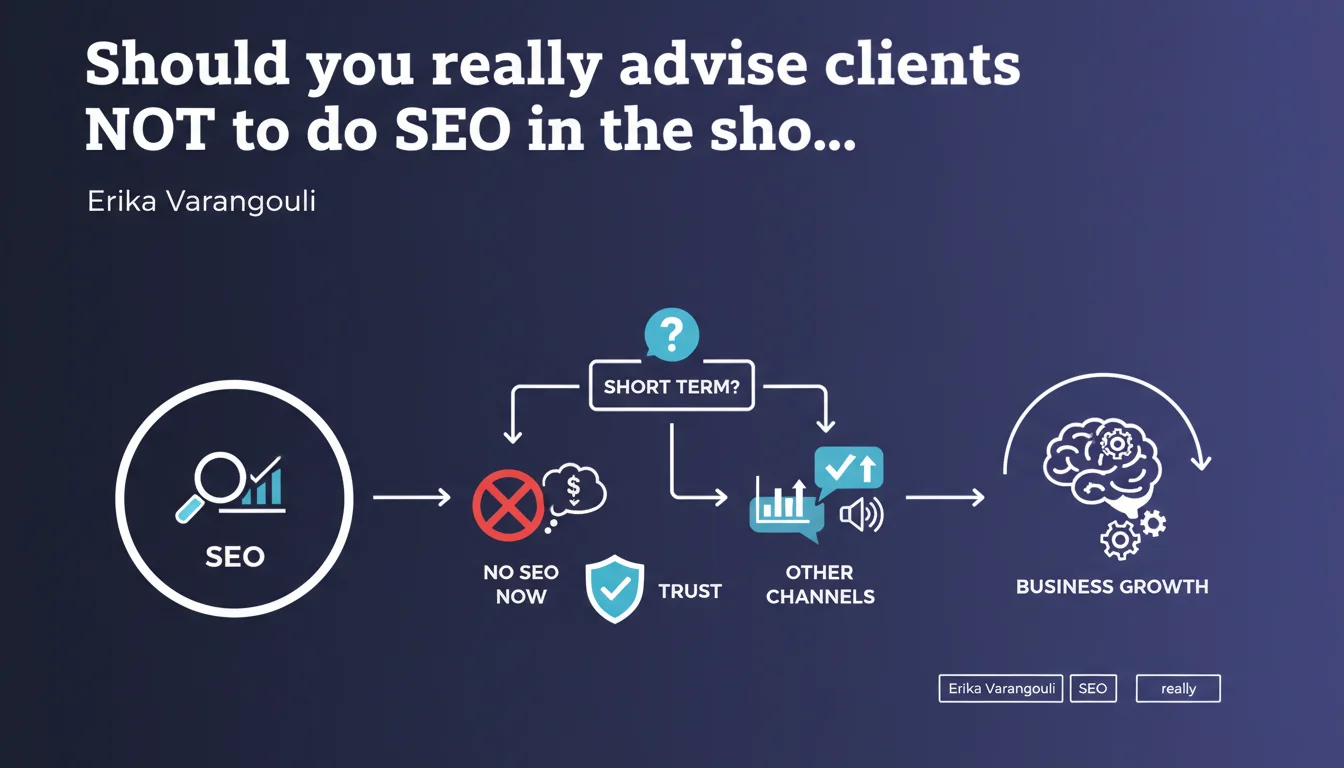 Traditionally, an SEO consultant is paid to... do SEO. Recommending against immediate investment in organic search looks like commercial suicide. Yet Erika Varangouli points to a revealing paradox: this honesty is precisely what distinguishes an expert from a service vendor.