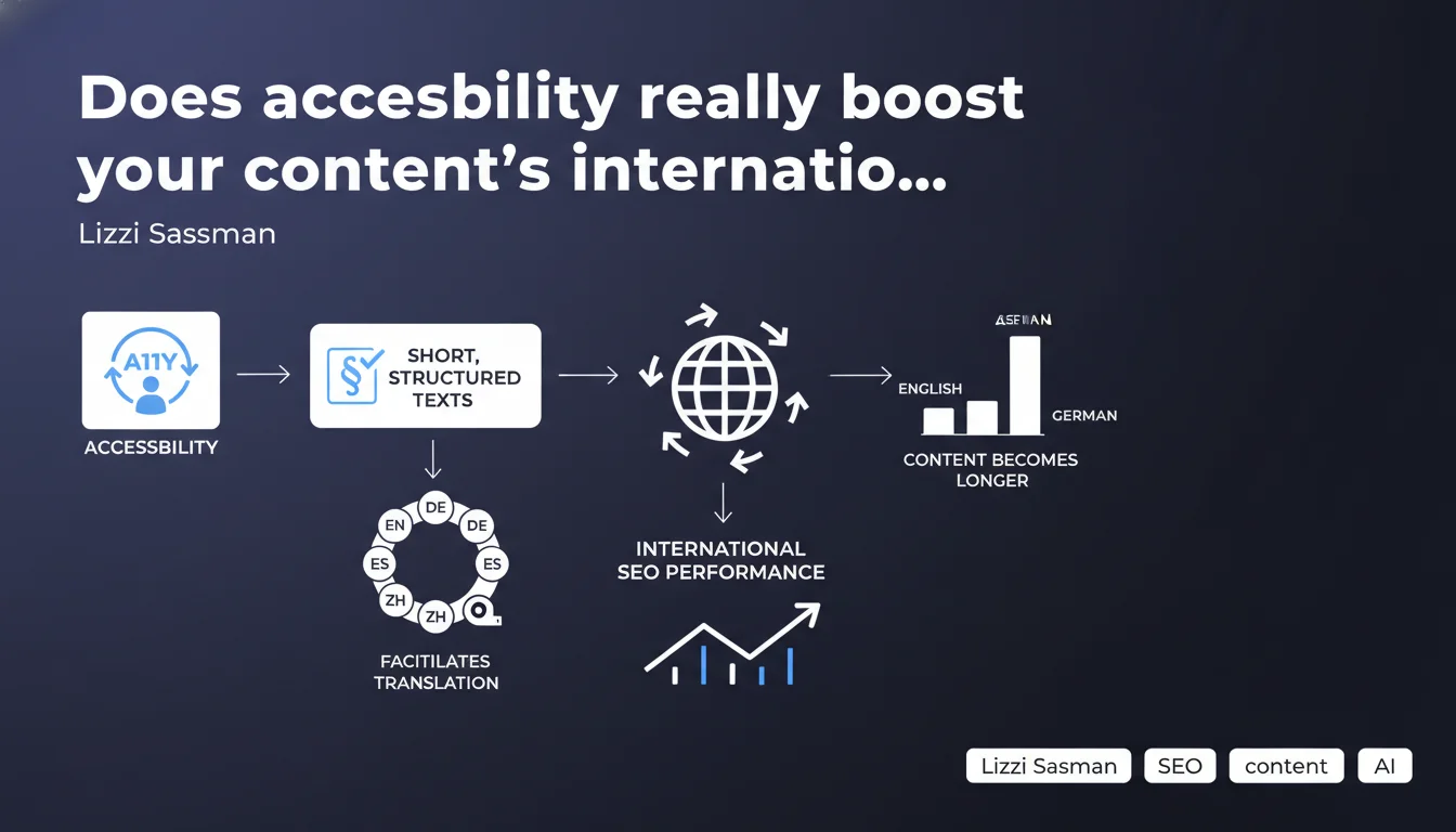 Google draws a direct link between web accessibility and content translation. The logic: a well-structured text with short sentences and clear hierarchy translates more faithfully into other languages.