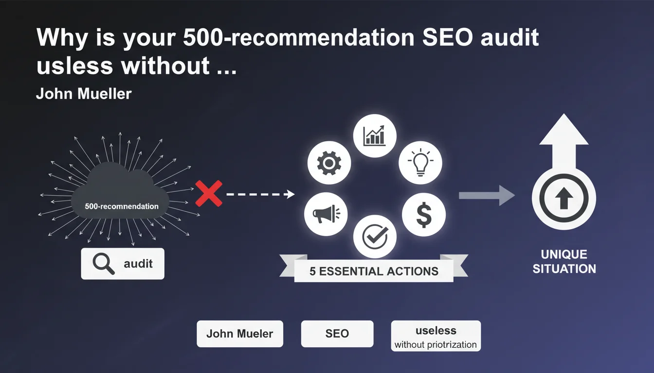 John Mueller states that an SEO audit generated by a tool has no value without human prioritization. The real work of SEO consists of identifying the 5 critical actions among hundreds of recommendations, based on each company's unique context. Expertise lies in sorting, not in data collection.