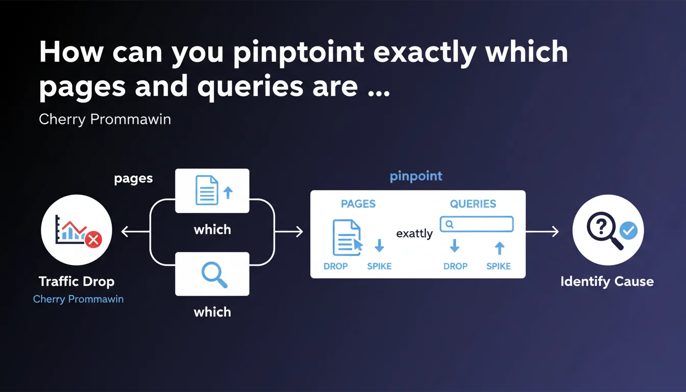 Cherry Prommawin emphasizes that aggregated analysis—like "my site lost 15% of traffic"—provides no actionable insight. What matters is knowing which specific URLs lost which specific queries.