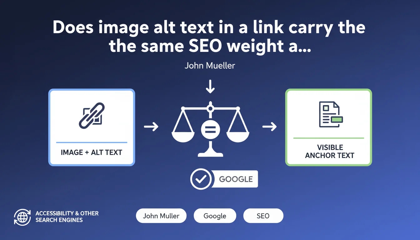 Google treats the alt text (alt) of an image placed within a link exactly like standard anchor text. Both have equivalent value for SEO, regardless of their order in the HTML code. However, retaining visible text remains essential for accessibility and third-party search engines.