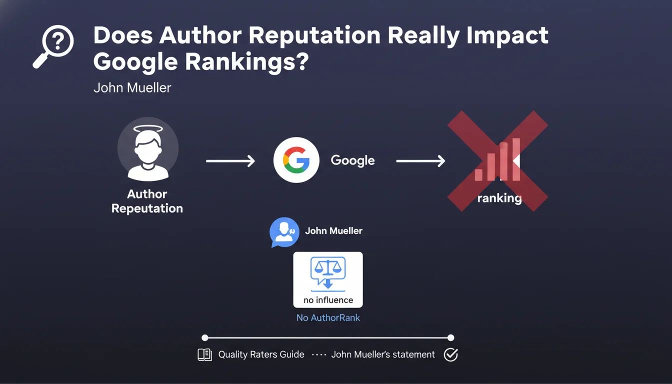 - No direct author score: Google states it doesn't calculate an AuthorRank that would automatically boost your content