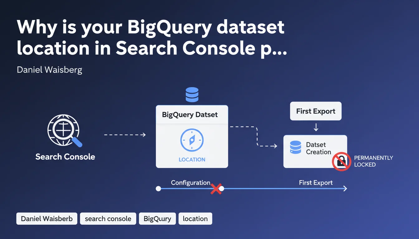 When setting up bulk export from Search Console to BigQuery, the dataset location you choose becomes permanent from the first export onward. No changes are possible after that point. This technical constraint requires strategic planning around data location before implementation begins.