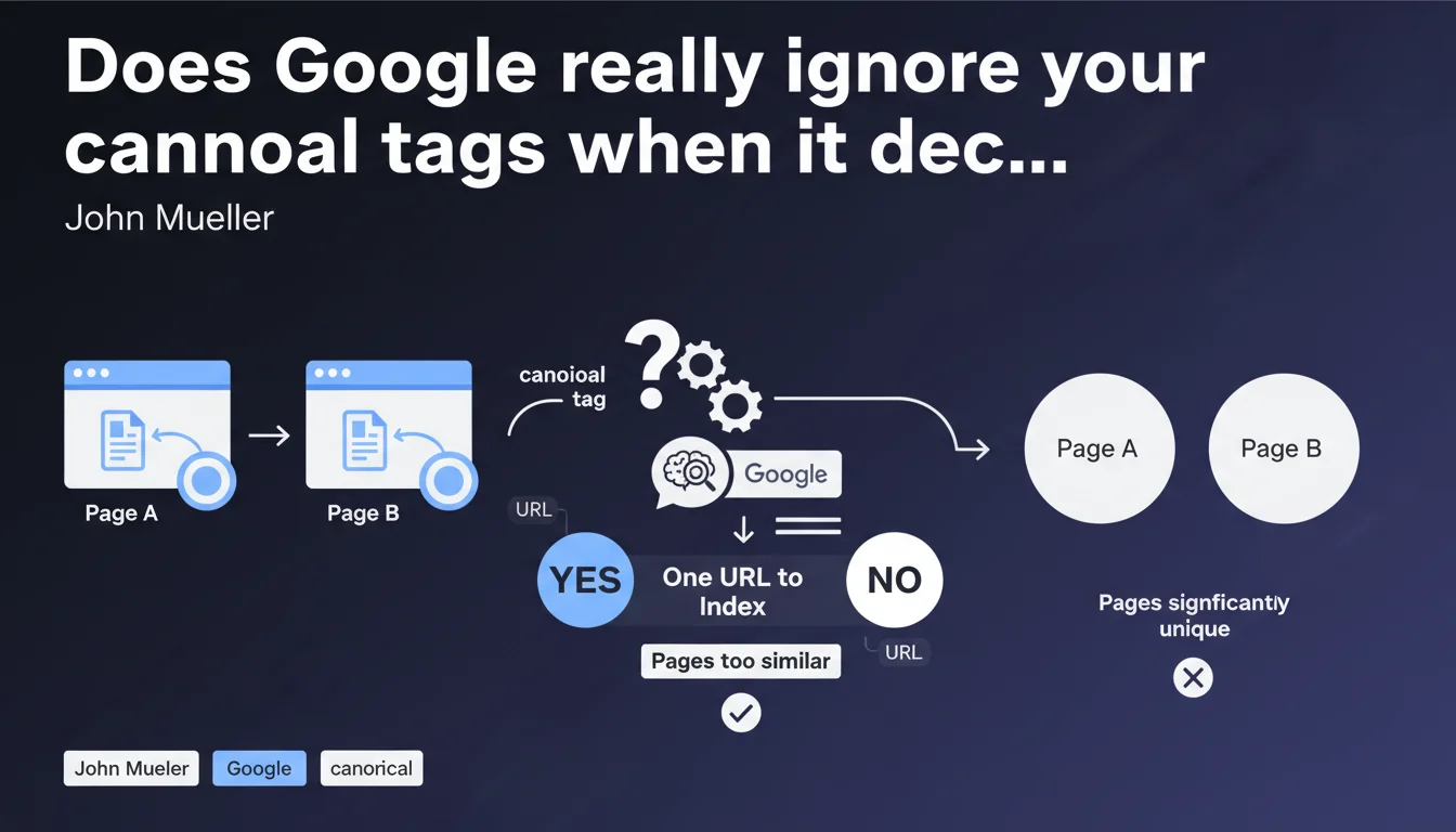 Google decides itself which URL to index when it considers multiple pages "essentially the same," regardless of your preferences. The only solution: ensure your pages are different enough for the algorithm to consider them unique. The threshold for differentiation remains unclear.
