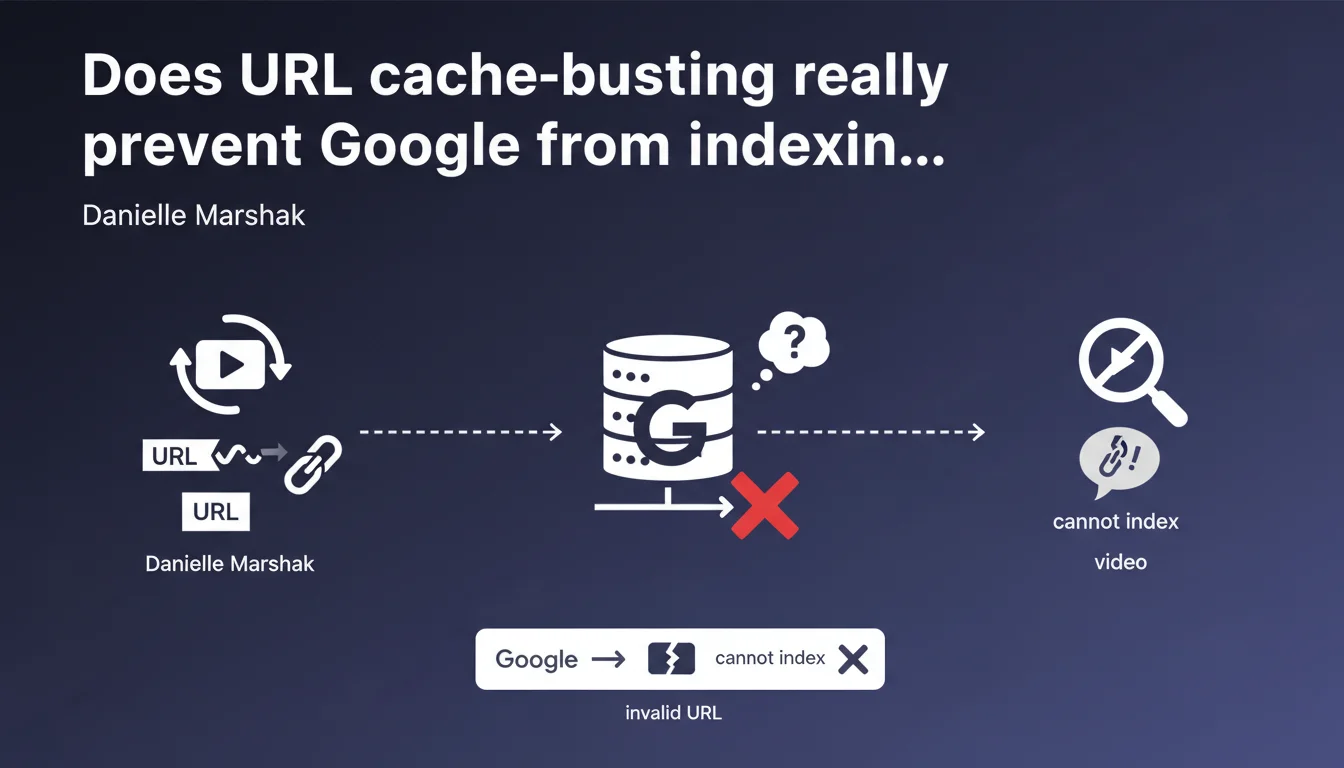 Google cannot index a video if its URL changes with every page load (cache-busting). By the time Googlebot attempts to retrieve the video resource, the URL is no longer valid. Result: your video remains invisible in search results.