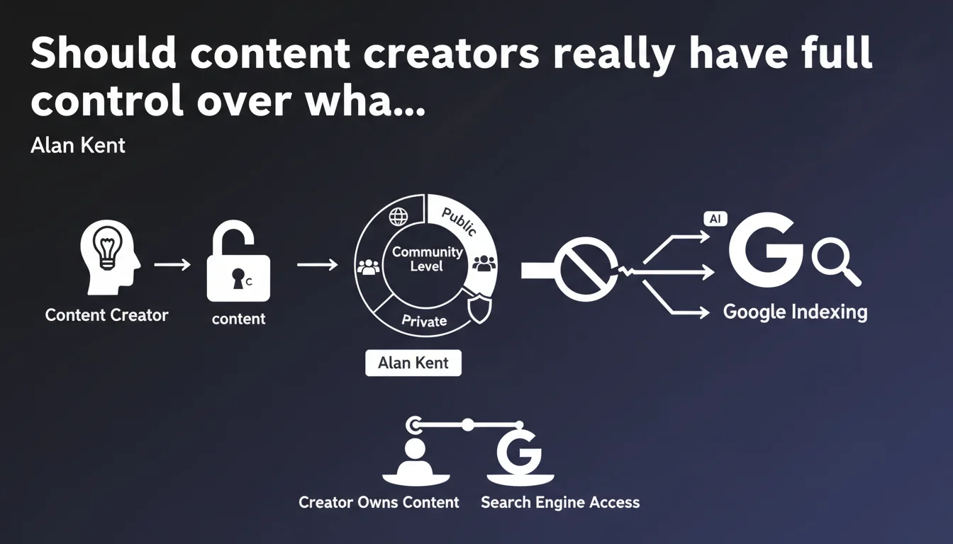 Alan Kent asserts that content creators must maintain control over what is exposed to search engines. It's up to the site owner to decide what becomes public and at what level, because it's their content. A position that reaffirms the importance of robots.txt files, meta robots tags, and granular indexation strategies.