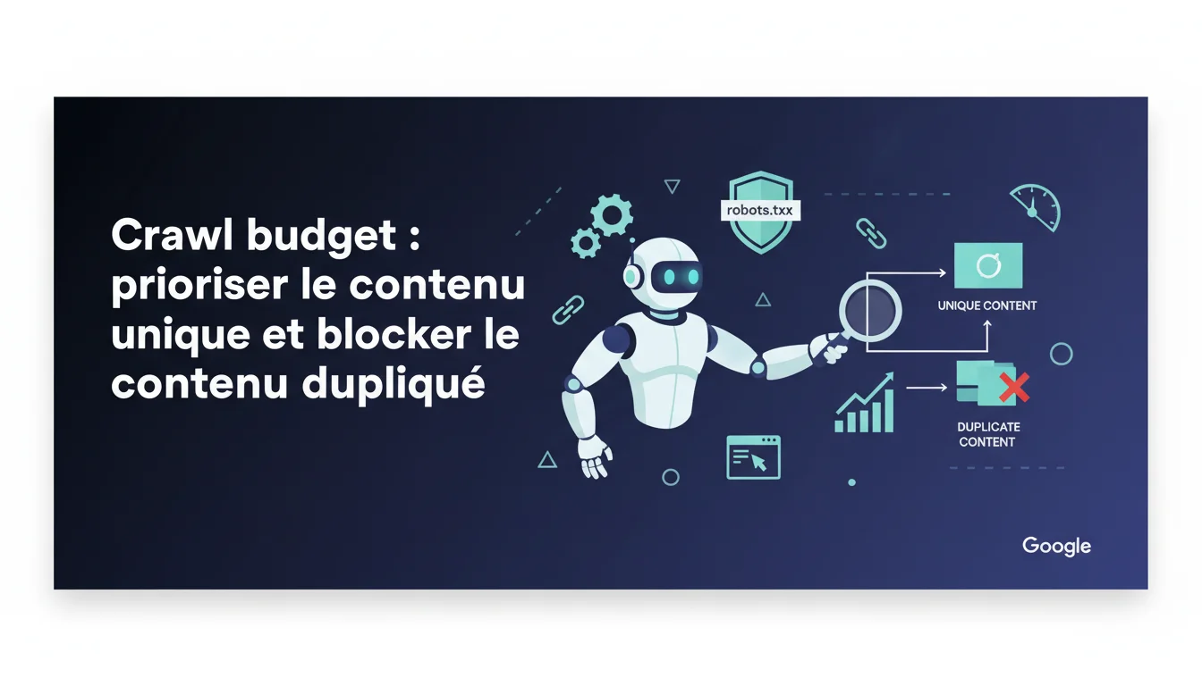 Google advises optimizing the crawl budget of large sites by prioritizing unique content. Use robots.txt to block unwanted duplicate content. Avoid linking to URLs that should be disregarded by Googlebot.
