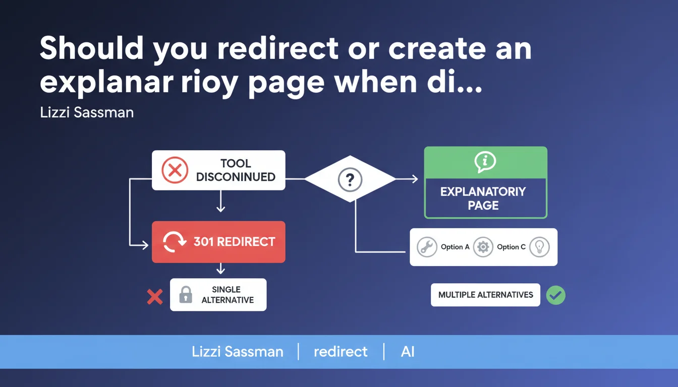 This statement from Lizzi Sassman addresses a recurring dilemma: what to do with a popular URL when the associated product or service no longer exists? The standard answer is often a 301 redirect to the best alternative.