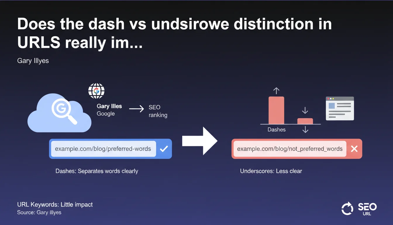 If you're launching a new site or a complete redesign, adopt dashes from the start. But if your site has been running with underscores for years and performing well, leave it alone. Focus your energy on optimizations with measurable ROI: content, link building, Core Web Vitals.