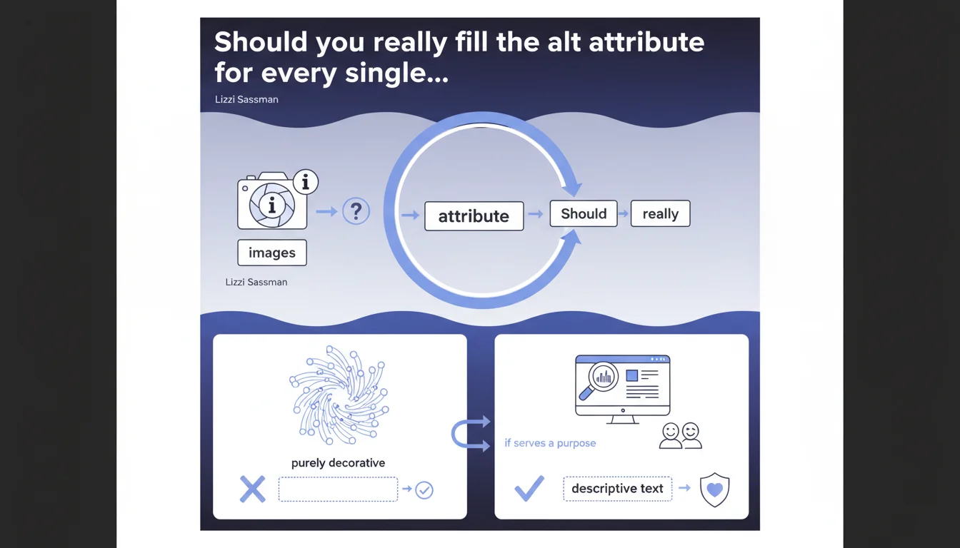 Google confirms that an empty alt attribute is acceptable for purely decorative images. However, the boundary between decorative and useful remains blurry, and Google suggests that alt text "may be preferable" even for aesthetic visuals. Caution dictates evaluating the real role of each image before leaving the attribute empty.