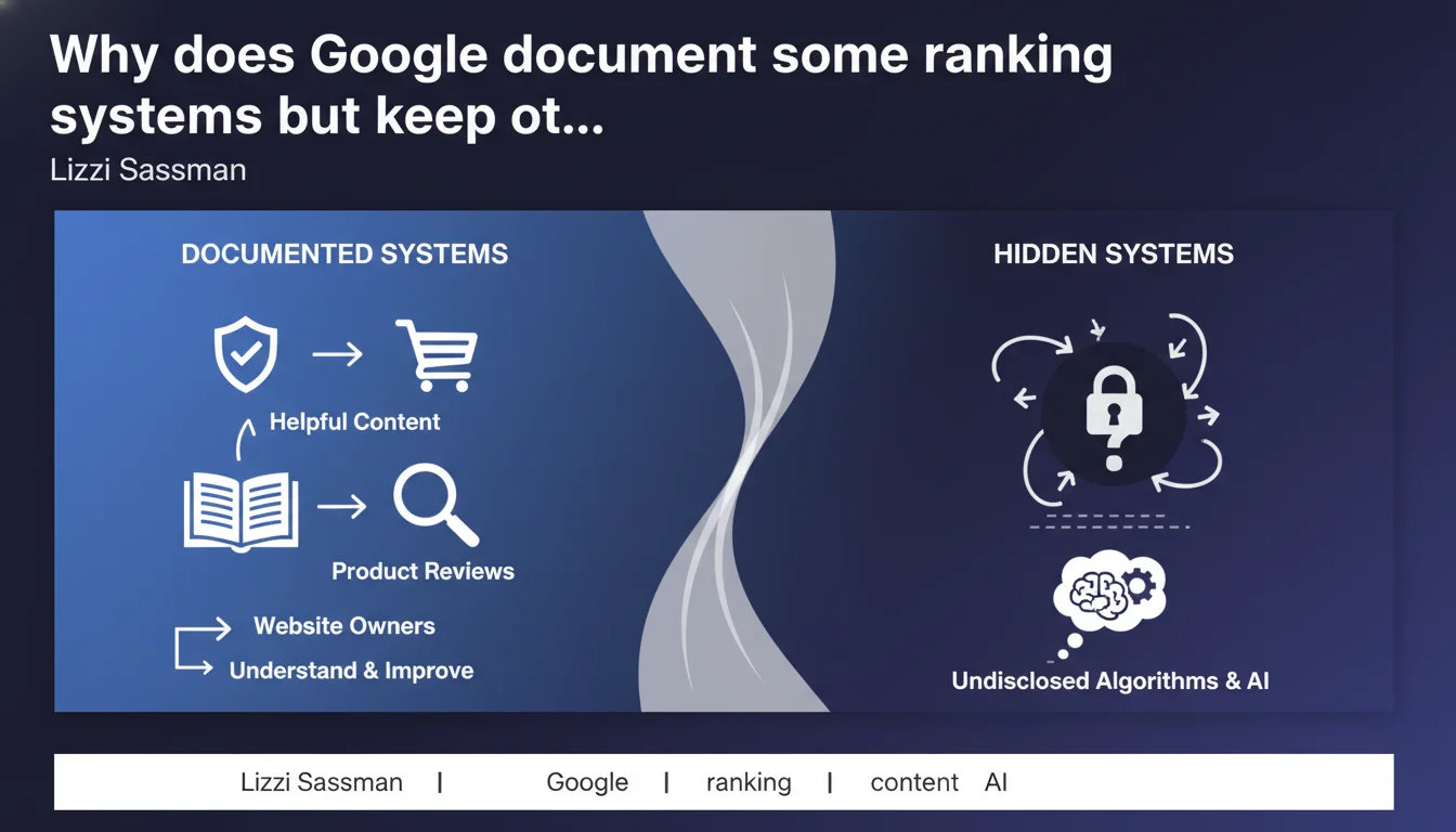 Google publishes detailed documentation only for certain recent ranking systems like Helpful Content and product reviews. The stated goal: help website owners understand these mechanisms. But this selectivity raises questions about what intentionally remains in the shadows.