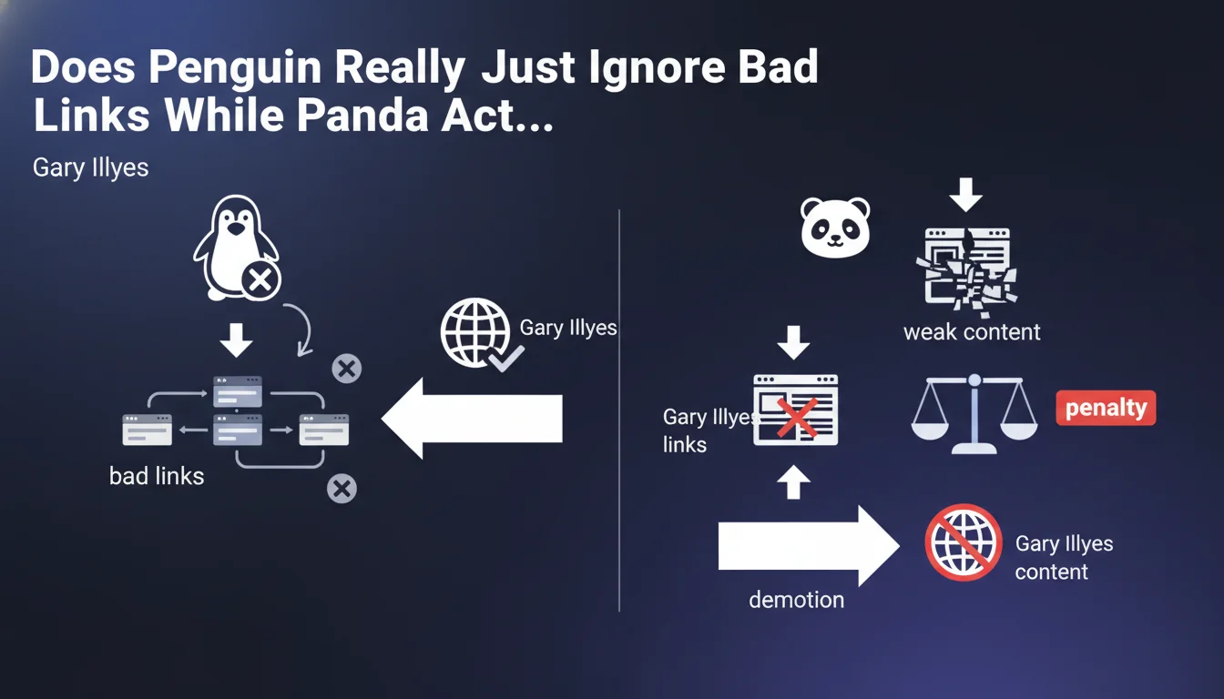 A site with automated low-quality content AND spam links suffers a double impact. Panda demotes it for content, while Penguin neutralizes its link manipulation attempts.